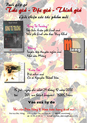 Xin trình bày đến các bạn sơ lược tiểu sử các tác giả có tác phẩm được trình bày vào buổi gặp gỡ Tác giả – Độc giả – Thính giả tổ chức ngày 29/10/2000.