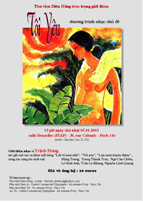 Dưới đây là chi tiết chương trình nhạc Tôi Yêu do Thư viện Diên Hồng tổ chức ngày 05/10/2003 tại FIAP.